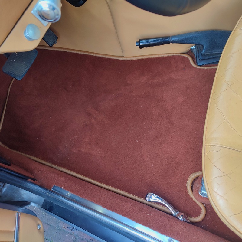 Set of floor mats (front only) custom made for the Longchamp. Premium velours quality. Now also available in the color cognac. The cognac color looks very good and comes close to the original brown carpet.
